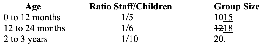 The bill also increases maximum group sizes while maintaining the same child-to-staff ratios and space constraints.