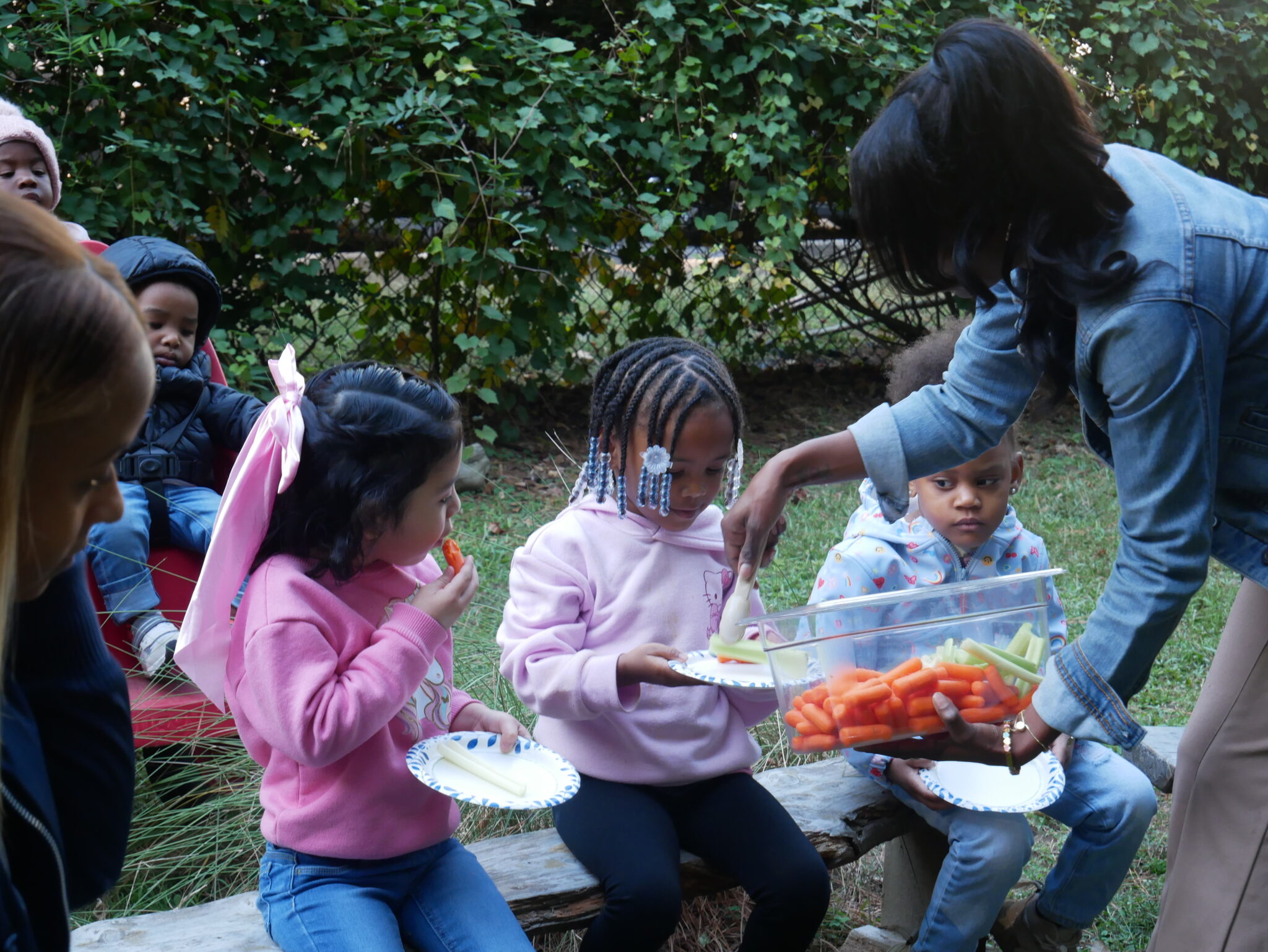 On EdNC’s recent visit to Shaw’s program, children and staff gathered outside under a gazebo and counted down to 10:00 a.m. to bite into local produce and celebrate NC Crunch Day, an annual celebration of healthy foods in child care centers and K-12 schools.