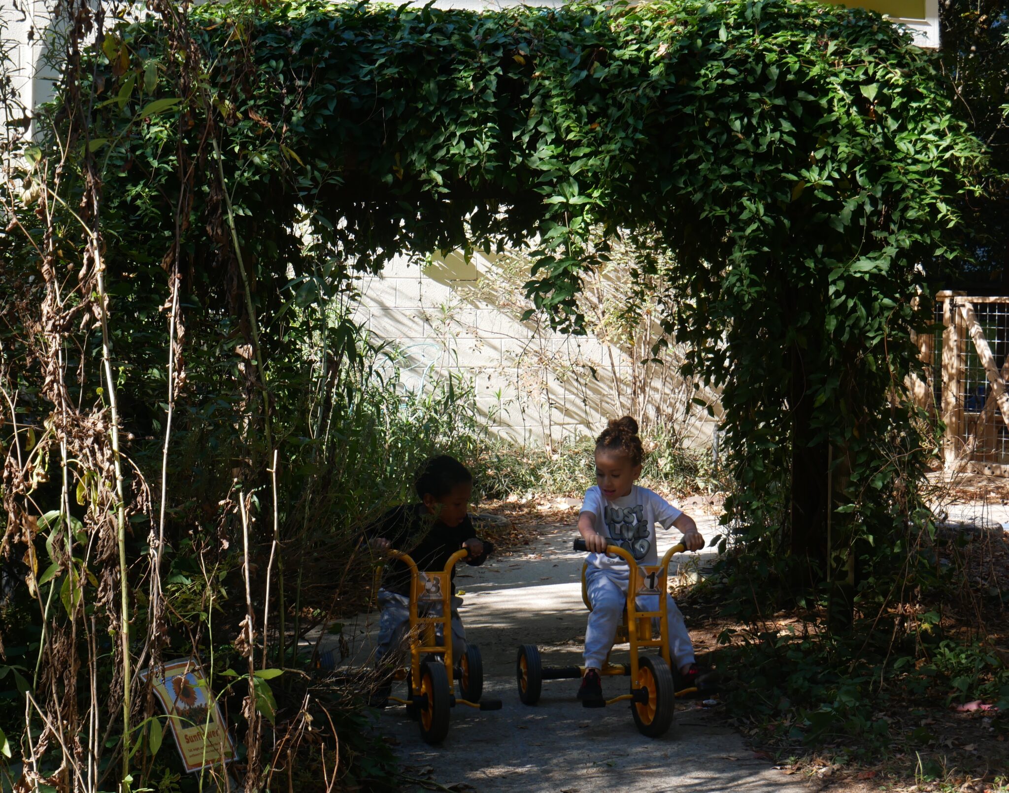 Byron McIntyre, program support manager at Shaw’s program, pointed out sensory gardens, a nearby chicken coop for field trips, and an outdoor infant classroom. He said children learn, eat lunch, nap, and grow and harvest food outside.