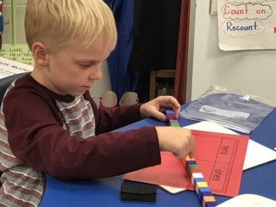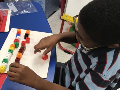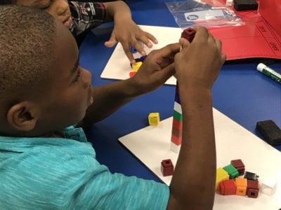 In Webb’s lesson on the number seven, her students were using different combinations of blocks to add up to seven (concrete) and then writing the equation for that combination (abstract).