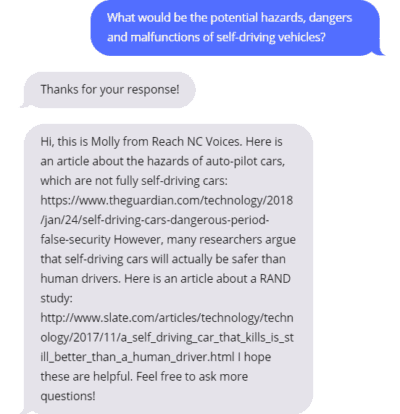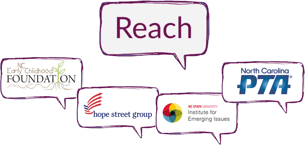 Reach also powers surveys and other listening efforts for partners, including the Hope Street Group of North Carolina, PTA, and NC Early Childhood Foundation. In a few weeks, the Institute of Emerging Issues will use it for their ReconnectNC forum in Asheville.