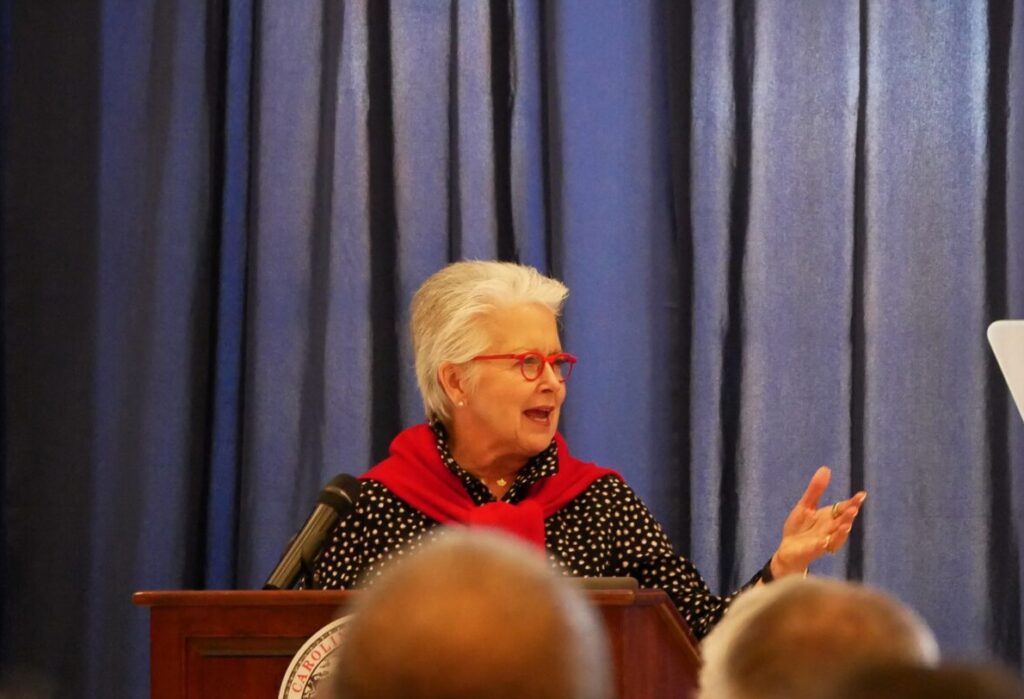 Following Wood’s remarks, former N.C. Secretary of Commerce Sharon Decker, who now serves as senior advisor for long-term recovery for the Governor’s Recovery Office for Western North Carolina (GROW), delivered a response focused on North Carolina.