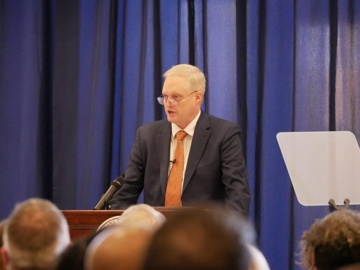 Following Wood’s remarks, former N.C. Secretary of Commerce Sharon Decker, who now serves as senior advisor for long-term recovery for the Governor’s Recovery Office for Western North Carolina (GROW), delivered a response focused on North Carolina.