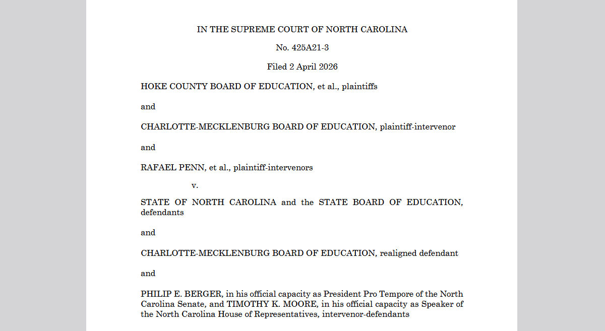 This opinion was the only opinion issued today by the court before a state holiday. EdNC will provide additional coverage and analysis in the coming weeks.