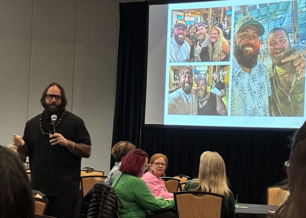 Early in the presentation participants were asked to close their eyes and listen to a song by Teddy Swims. Then Smith shared a personal story. After recognizing Teddy Swims on one occasion, Smith was unexpectedly invited to his concert and an after-party that same night at no cost.