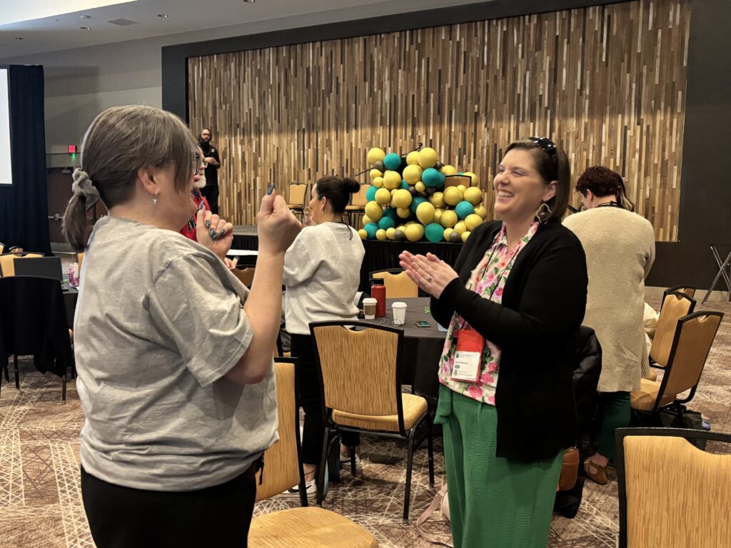Then she asked whether anyone had found an “Educate. Advocate. Empower.” sticker or pen, and a few attendees spoke up. Two attendees won free three-day passes to the 2027 annual conference, while another received a complimentary hotel stay with breakfast.
