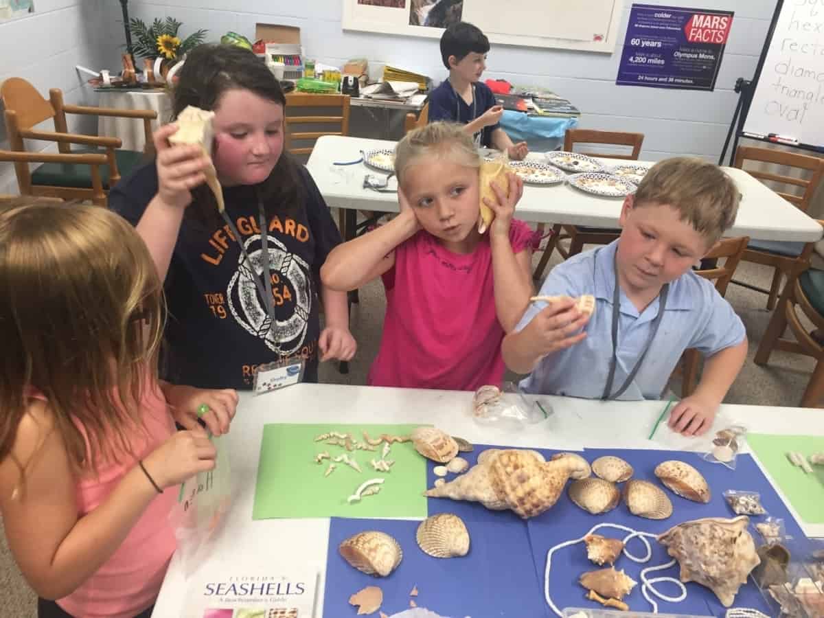 Sandy Putnam, a retired biologist, came and taught a science lesson about the ocean, with all the things early learners would want to see and touch. Students were able to take home a bag of seashells after the activity. As a gift to the camp, Putnam purchased a science book for each student to have as their own on the last day. In addition to the science books, at the completion of camp, students take home a backpack full of donated books, a special shirt, and a summer literacy camp certificate.