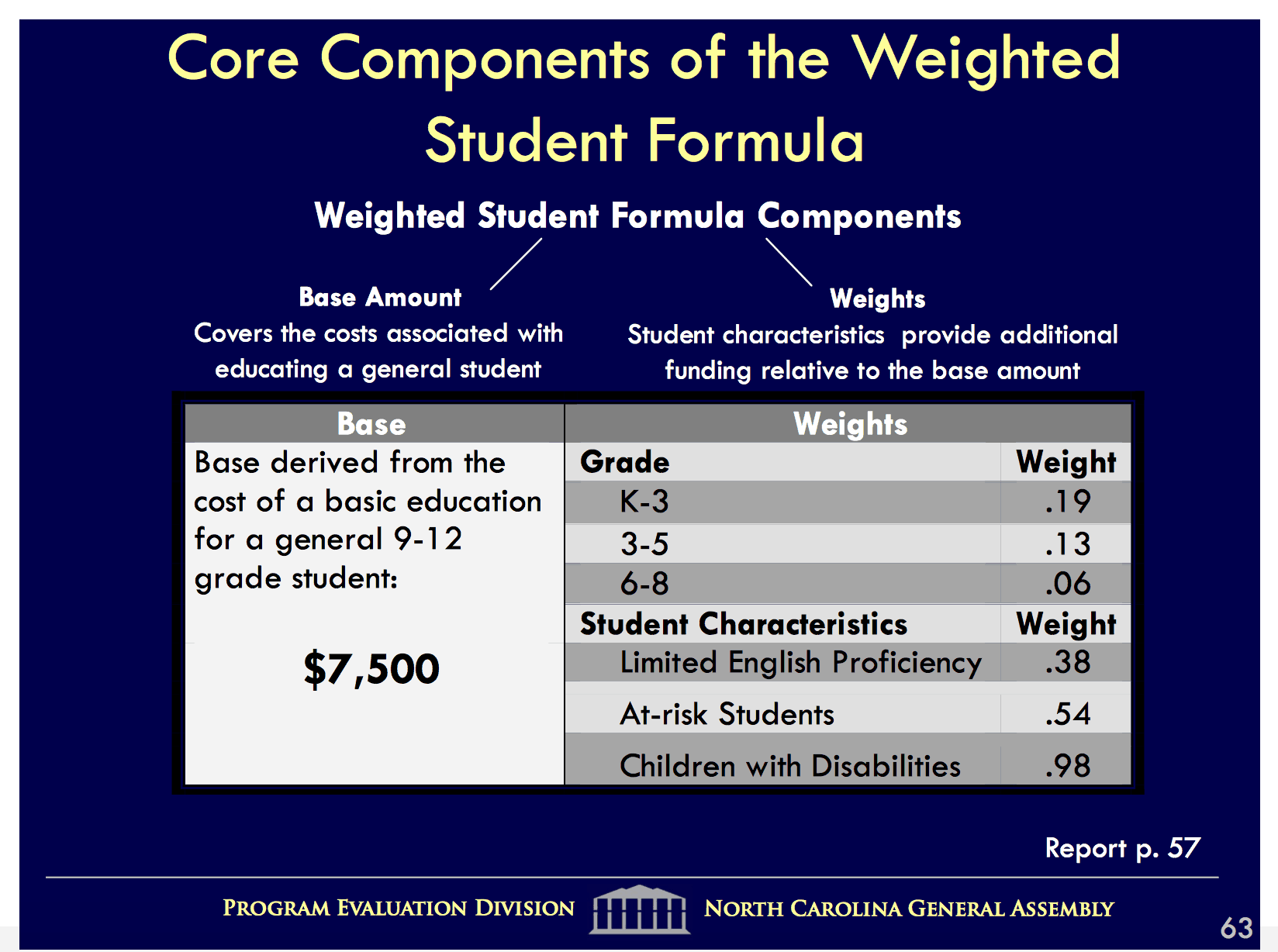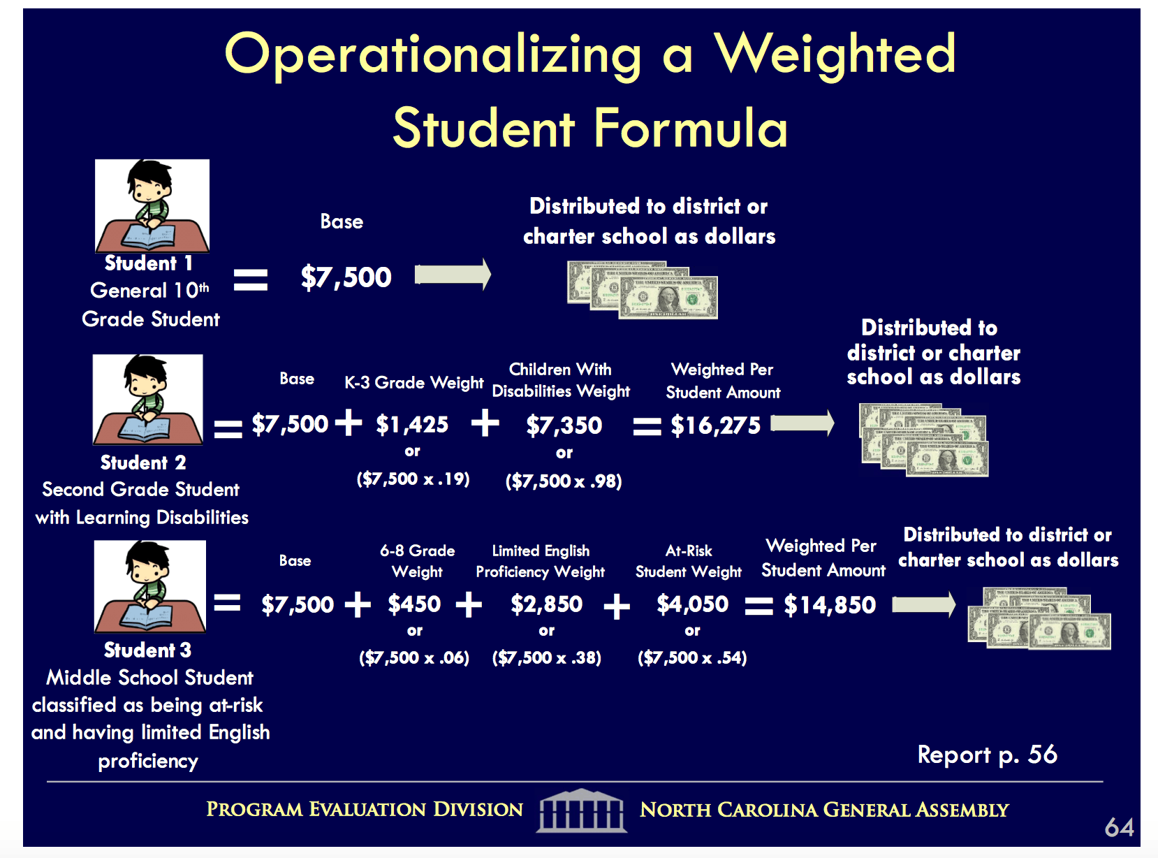 To understand the significance of this, it’s important to first understand both how North Carolina currently funds its K-12 schools, and how a weighted student formula would do so.