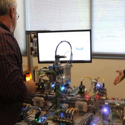 The school has the newest equipment available, called a “trainer,” which has different automation pieces that students can learn to program. It’s a small version of the larger machinery found at manufacturing plants.