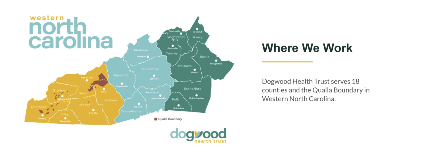 Dogwood “exists to dramatically improve the health and well-being of all people and communities in the 18 counties and Qualla Boundary of western North Carolina.”
