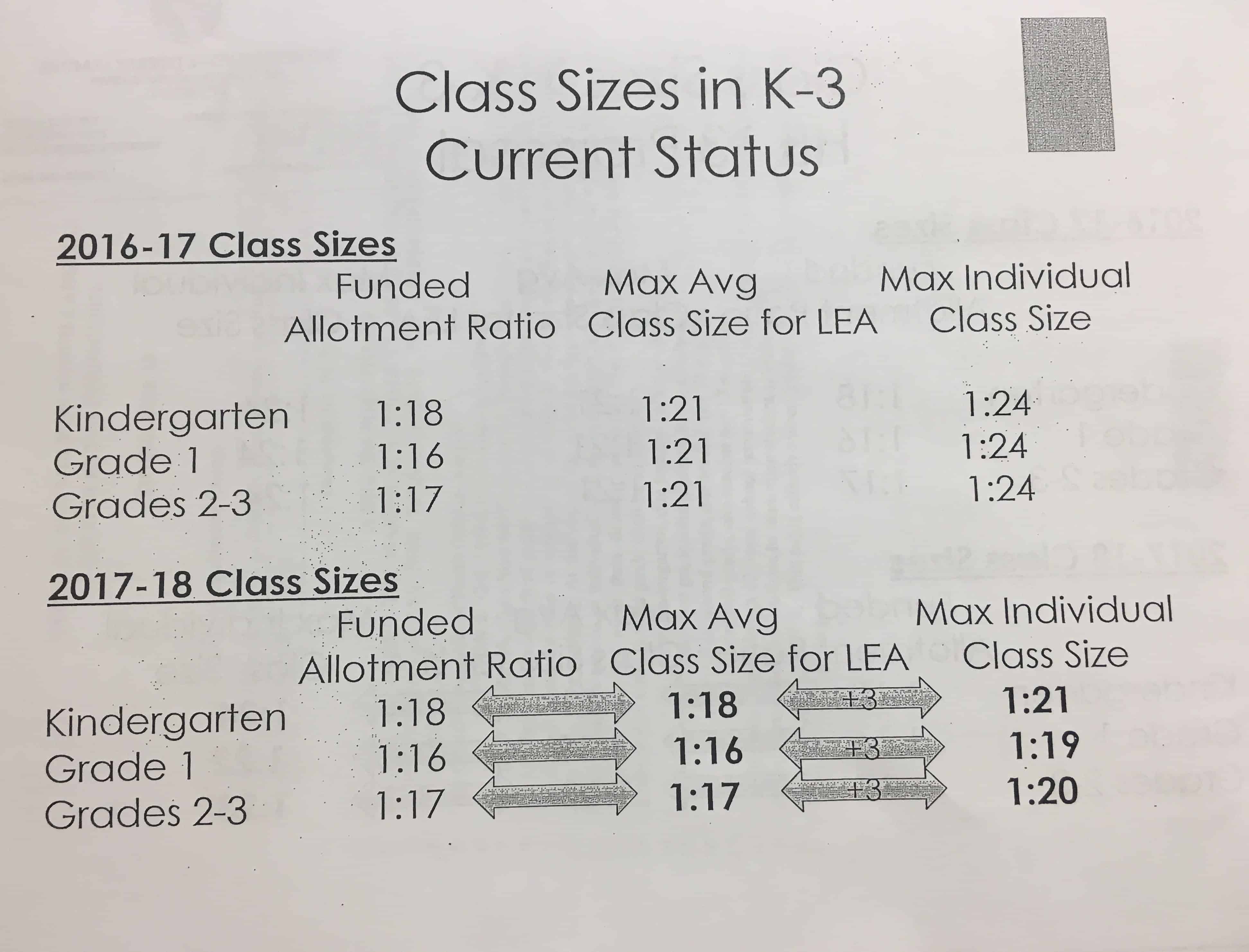 The legislation tweaks the budget’s language to let the maximum average classroom size for K-3 exceed the teacher to student ratios by three students, and the maximum individual class size for K-3 by six students.