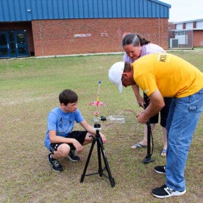Scattered wooden parts sat on tables in a classroom at Wayne Community College in Goldsboro as middle schoolers fashioned the pieces into their very own wooden airplanes. These airplanes weren’t for passing notes across the classroom, though. They were being prepared for launch.