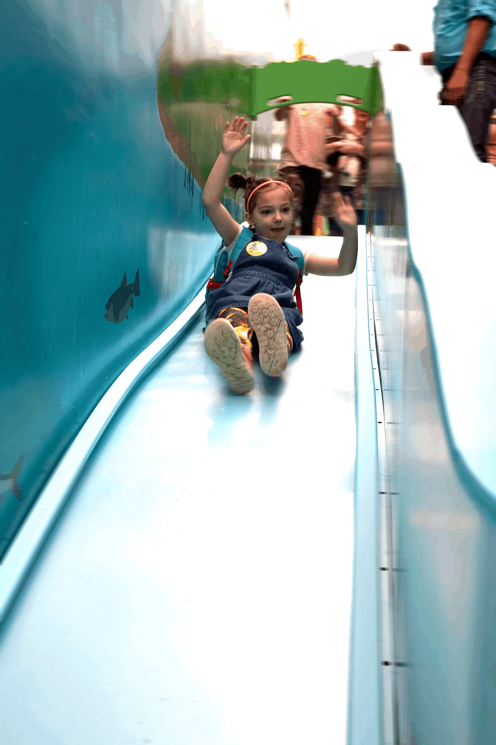 In case you missed it, Marbles Kids Museum opened a new exhibit at the end of March called River Playway. The exhibit, created in partnership with Duke Energy, invites visitors to pretend they’re on the Neuse River with activities like spotting native species of plants and animals, “splashing” with fish along an interactive floor, building a beaver dam, and checking out local wildlife habitats. The hands-on exhibit also includes a rippling slide and a canopy lookout tower.