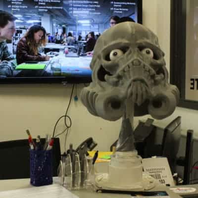 She was standing in a makerspace at DePaul University in Chicago called the Idea Realization Lab, with the sound of woodworking power tools roaring around her.