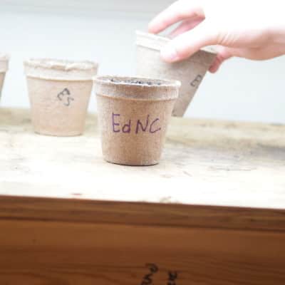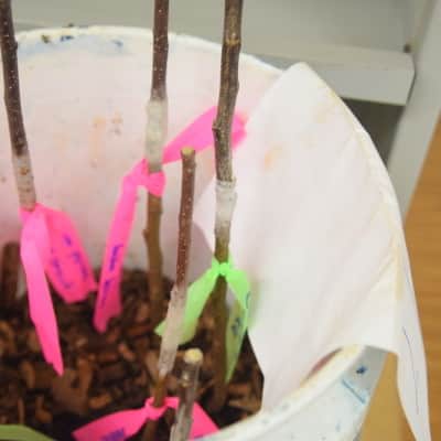 Roberts asks the students to bring me up to speed. It is clear that participation is required in this classroom – even from visitors. The students are checking out what looks like saplings in boxes.