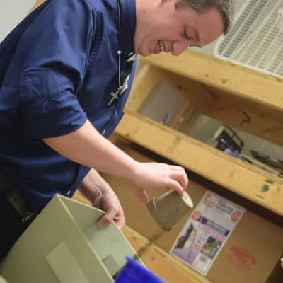 Students bring and leave work boots because on most days they are outdoors gardening.