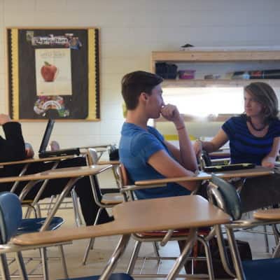 Roberts hands me an iPad. She has developed a game using a program called Kahoot! that incorporates the standards for this Ag Science class. It’s a formative assessment to test what we have learned so she can provide remediation in real time. Needless to say, I did not win.