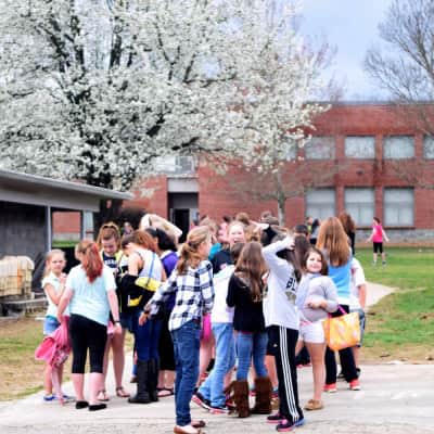 In Clay County, 1,485 elementary (pre-K to grade 4), middle (grades 5-8), and high school students attend three schools on one 52-acre campus against the backdrop of some breathtaking mountains. All of the schools run on the same bell schedule: 7:55am to 3:00pm. The school buses bring all of the students into campus – with kids of all ages riding the same bus.