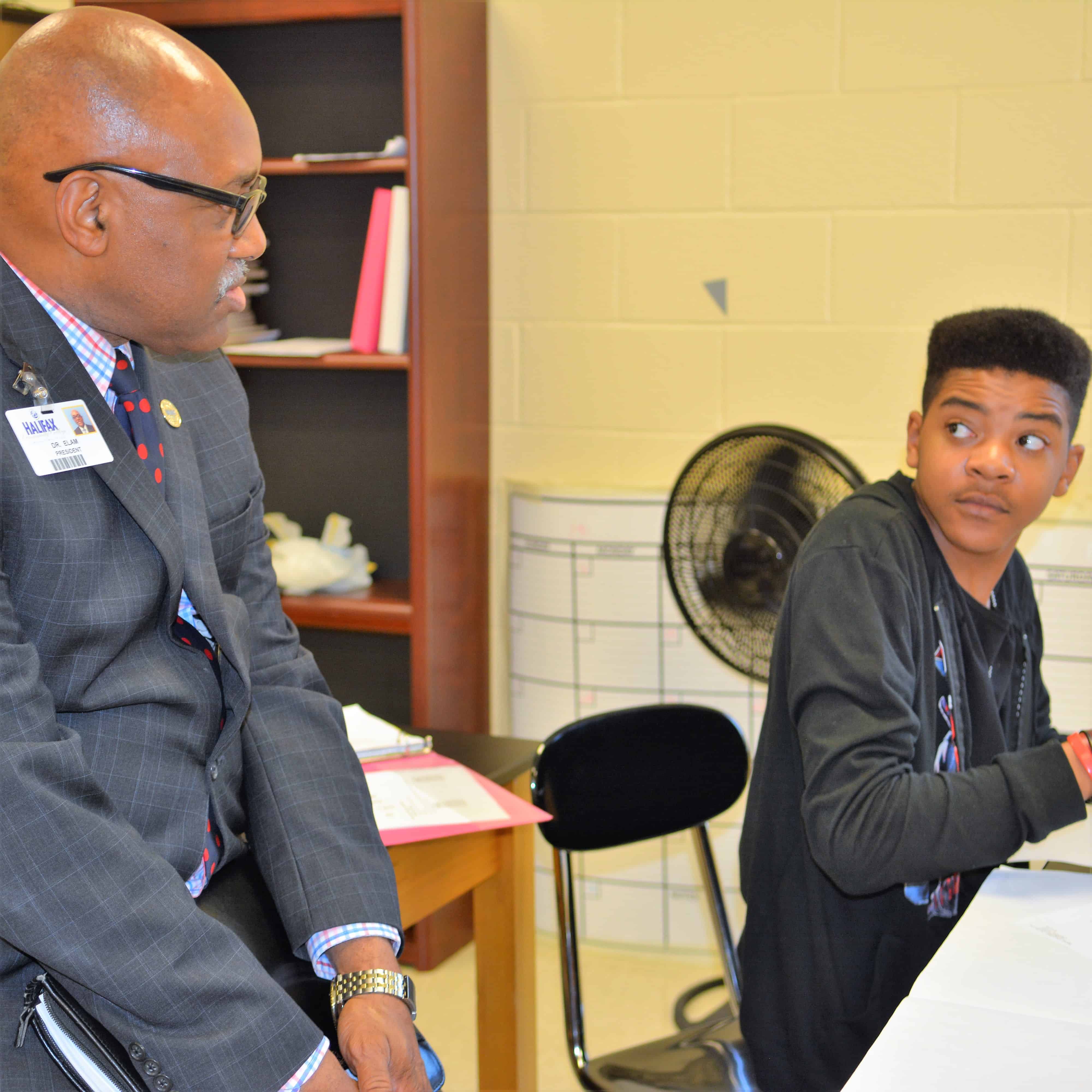 You can tell a lot about leaders by how they interact with students and faculty, how they participate in a classroom, and how they talk about their community and the future. In the photos above of Dr. Elam as he walked around Halifax Community College with me, you can see he is engaged.