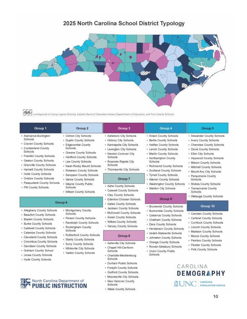 “It is hard to compare districts because there are many differences in local areas across the state’s 115 school districts,” the release says. “The 2025 North Carolina School District typology is intended to be a useful tool to help educational leaders, researchers, and other stakeholders make more appropriate comparisons across the state’s 115 school districts.”
