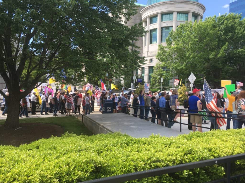 ReOpenNC protesters outside the General Assembly. Alex Granados/EducationNC