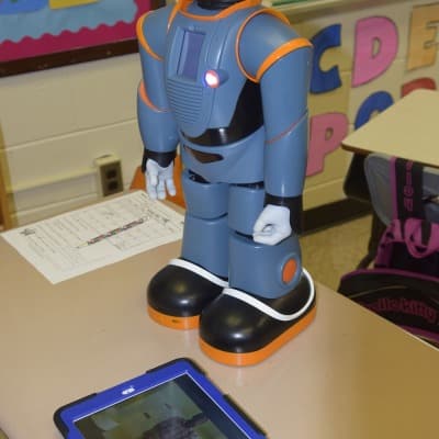 So far, four teachers have been trained to use Milo, and nine students are working with the robot. Morrow says that working with the robot is helping the students “strengthen speech patterns, gestures, and communication skills.” She says, “What sold me on it was that educators and engineers came together to create this tool for students to refocus their learning.” Milo can be programmed to deliver student-specific curriculum, and it tracks data on student performance for feedback to the teachers. Sessions with Milo last about 30 minutes, but students have to build up to that goal.