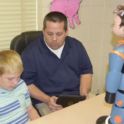 In the Davidson County Schools, 6.3 percent of the exceptional children are autistic, and this district is the first in North Carolina to use Milo to serve these students. School board member Vicki Trail heard of Milo and asked Morrow to look into it. Morrow asked CyberKids Robotics to figure out how to bring the program to her district. The robots cost $5,000 each, and the district is using two robots to serve students at the Stoner-Thomas School — a public, separate school for 92 exceptional children ages kindergarten to 22.