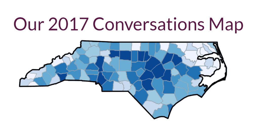 Reach NC Voices informs our engagement with you, allowing us to make sure people are connected us, to one another around “communities of purpose,” and to policymakers. Look for us to deepen our our work in Nash, Edgecombe, and Halifax counties in the east and in the Unifour (Hickory-Lenoir-Morganton-Taylorsville) heading west.