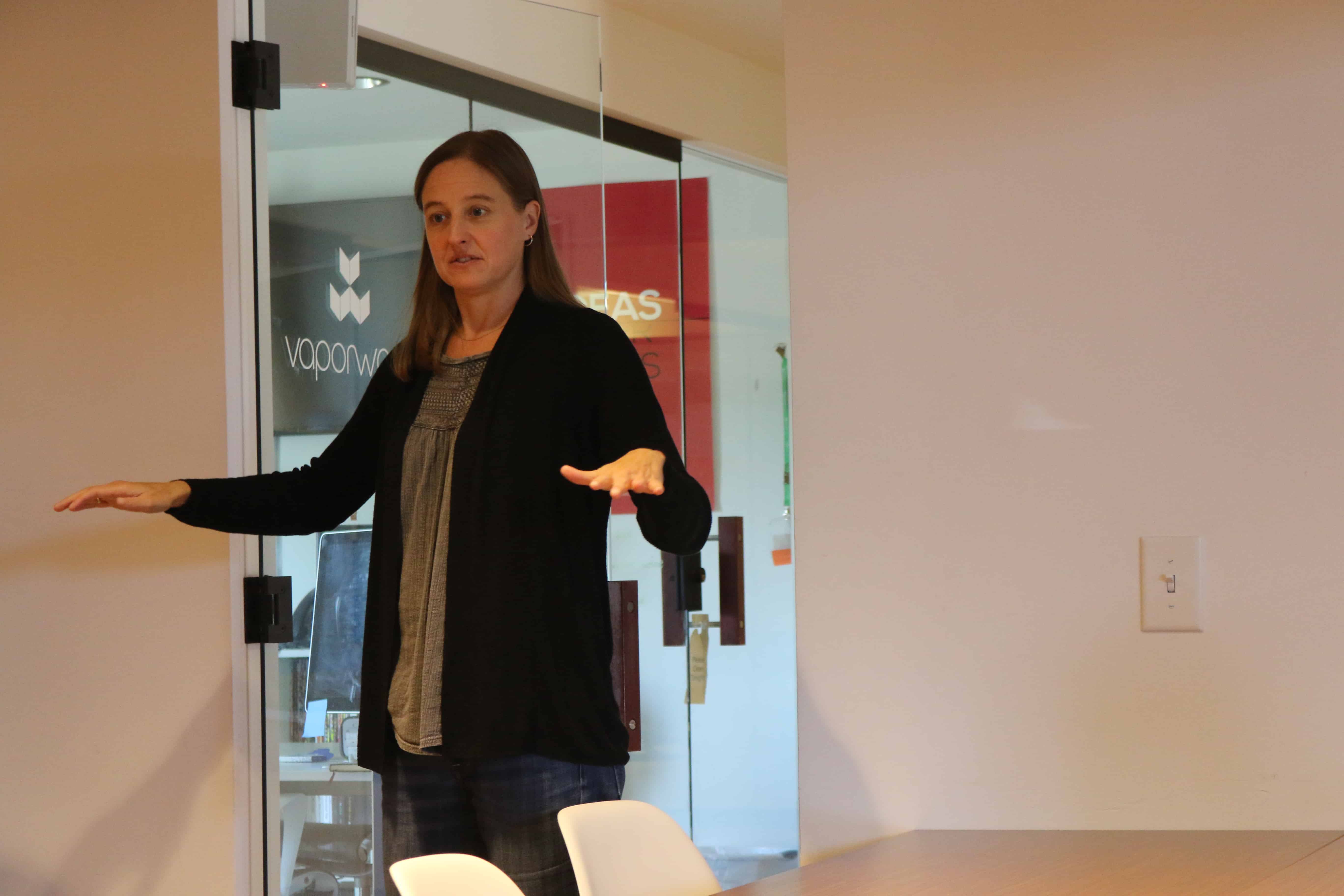 Downstairs, two squads were delving into Ello Raw founder Becky Holmes’s past. Holmes created her organic bite-size snack company for a reason, she shared. In her childhood, Holmes’ family members had serious mental and physical health issues. After a bad breakup, Holmes started working out and realizing the strong connection between food and physical and mental well-being.