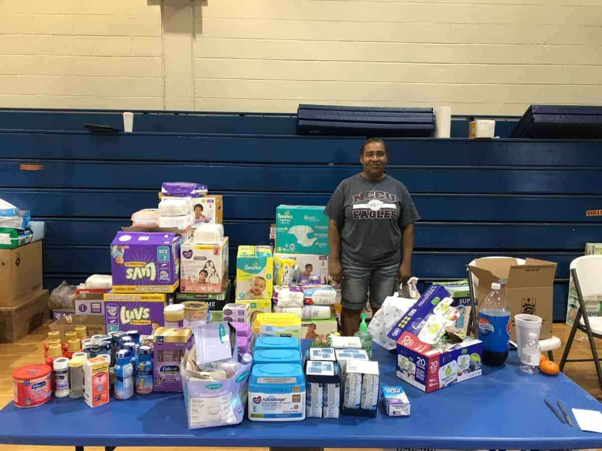 At first glance, the Lumberton Junior High parking lot seems less than a quarter full. Pulling around back reveals a different scene. Families are lined up collecting donated water, diapers, trash bags, wet wipes, clothing, hot meals, and more. Volunteers are passing out flyers for FEMA instructions and sorting, stacking, and distributing supplies in the gymnasium.