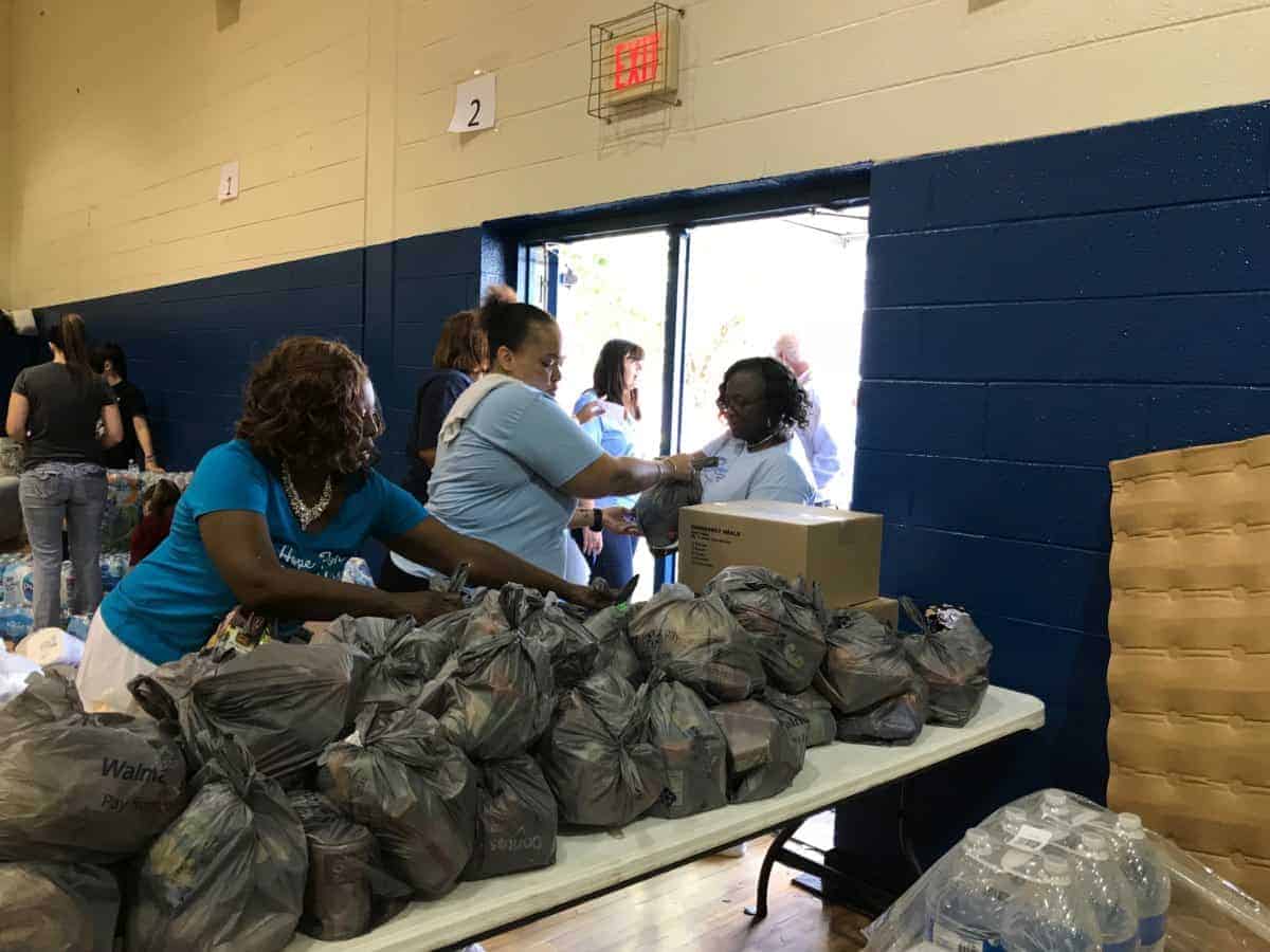 Kindergarten teacher Antoinette Thompson is one of those distributors. “We’re still volunteering because there are still people who are worse off than we are,” she said. She is joined by her teaching assistant, Shontay McNeill, who cannot get into her house and is staying with her pastor while her three children stay with her mother in Goldsboro.
