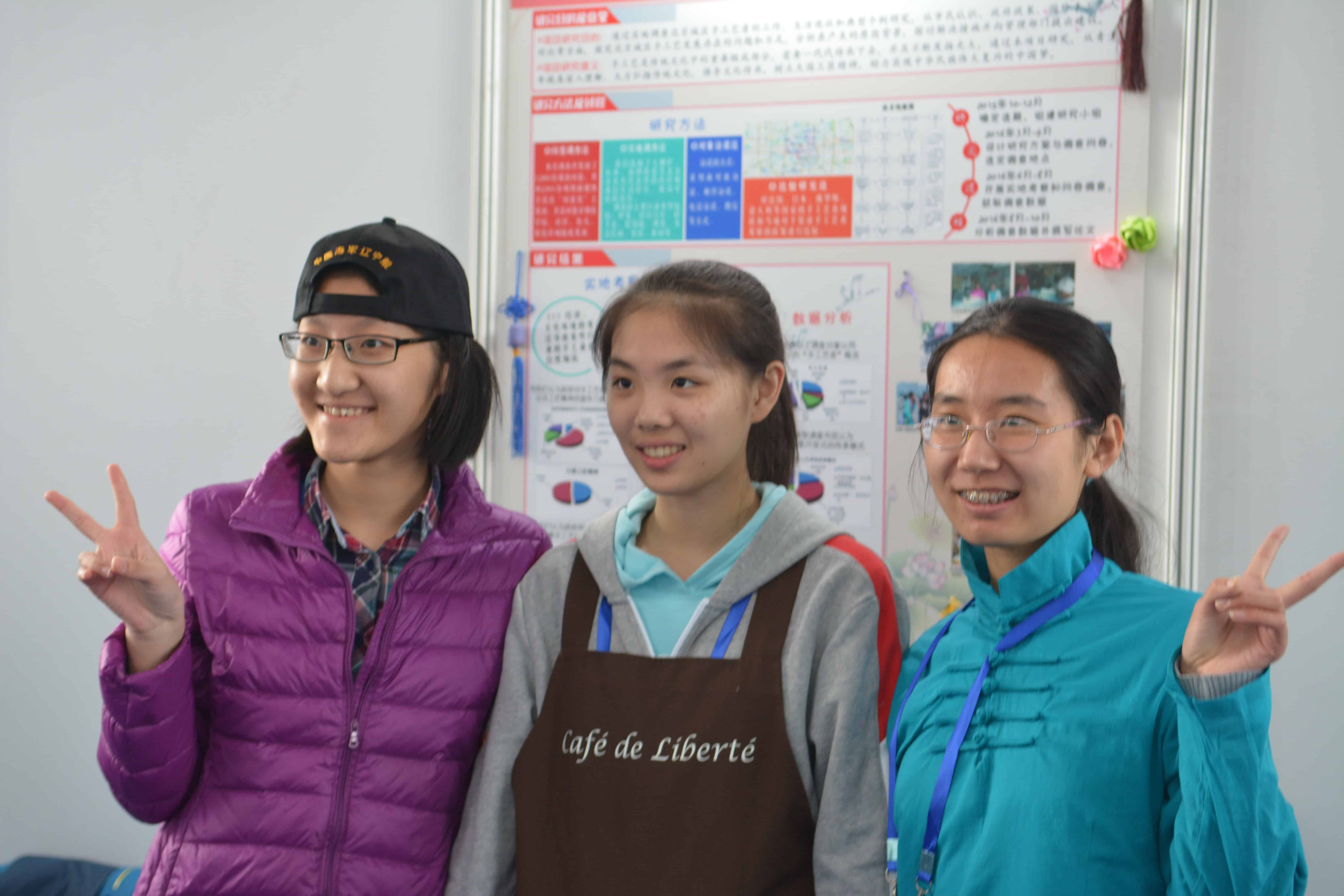 The sun came out today in Beijing, and we could see the Great Wall of China as we crossed the bridge on the way to the exhibition hall where the public was invited to view the students’ projects. We were all excited.