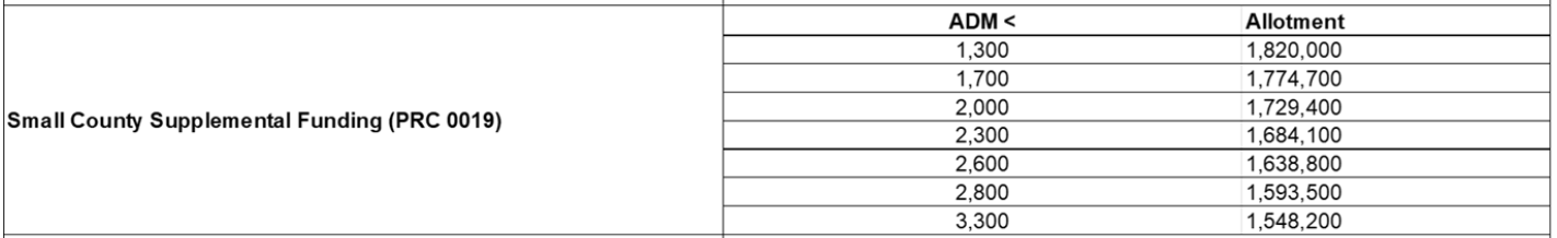On pages 19-22, you can find more information on funding for counties that are low wealth. And on pages 23-25, you can find information on small county supplemental funding.