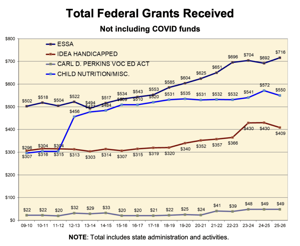 According to the report, in 2025-26, the majority of federal funding for public schools went to Title I, child nutrition, and IDEA, which protects rights for students with disabilities.
