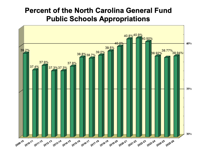 “Funding public education in North Carolina is a complex and integrated process,” the report says. “This booklet presents charts and tables which describe how state and federal funds are distributed to North Carolina’s Public Schools. It also reviews the changes in average daily membership (ADM) and school personnel.”
