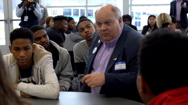 With a collective fist bump, Bristow-Smith and Donnell Cannon, another principal in Edgecombe County, kicked off EdNC’s first ever student town hall in the brand new Center of Innovation at Edgecombe Community College.