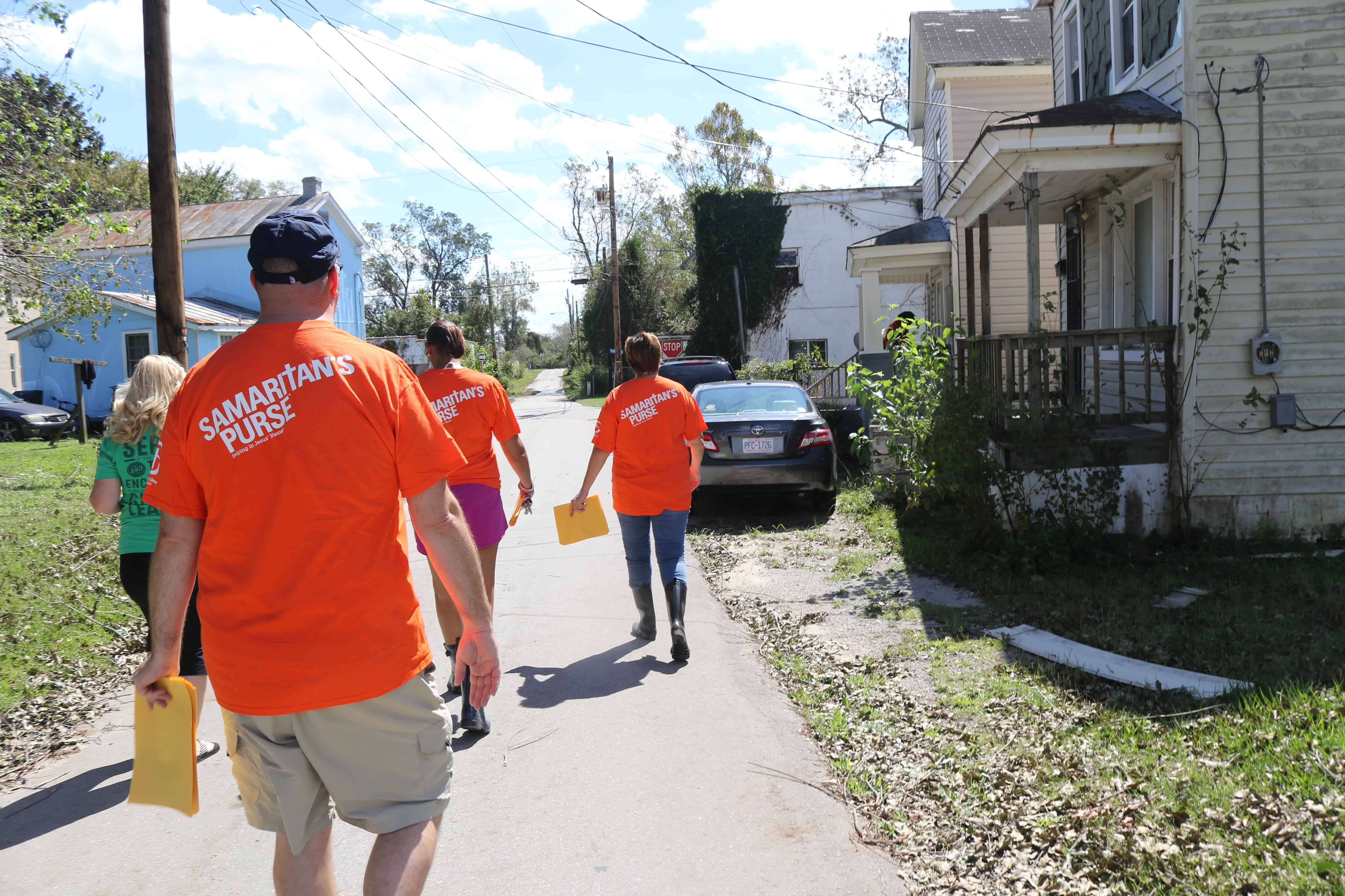 Most of the stormwater has receded in New Bern, but only a fraction of residents have returned to assess damage and start clean-up. As Craven County principals and teachers walked down streets, knocking on doors and handing out fliers with Samaritan’s Purse contact information and clean-up options, many knocks went unanswered.