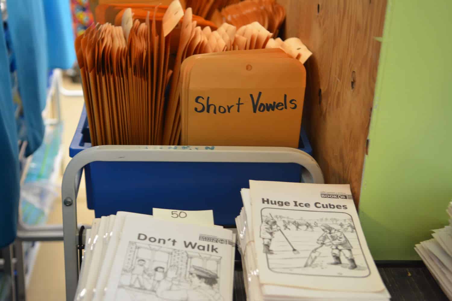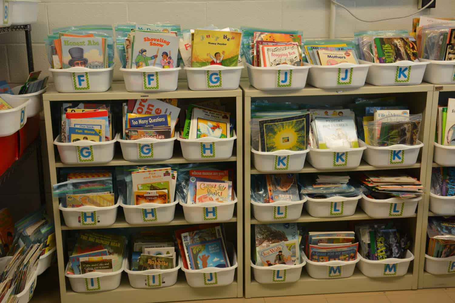 Ramona McFadyen is a literacy coach, and she worked with Tolbert during their summer vacation to “dig up” 4,000 books that over the years had ended up dispersed all across the school. They organized the books, looked up the reading level of each one, and then packaged them accordingly.
