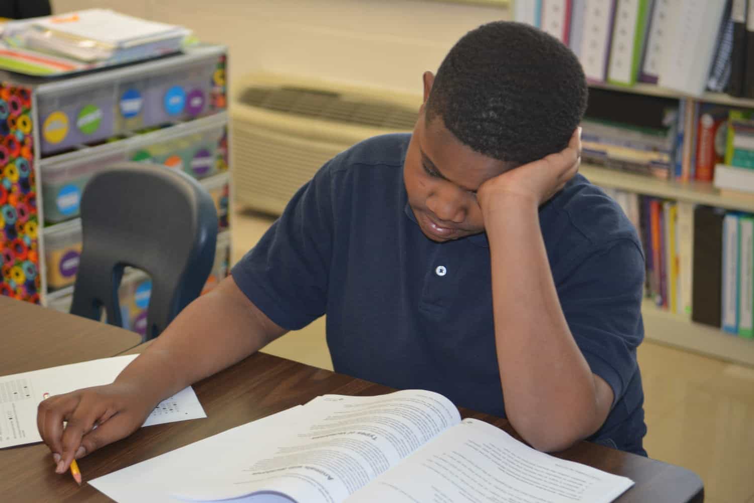 Robert Williamson works for Communities In Schools as a student support specialist here at Walker-Spivey. As soon as I walk in the building, the front desk staff tell me in no uncertain terms that “he is a hard worker.”