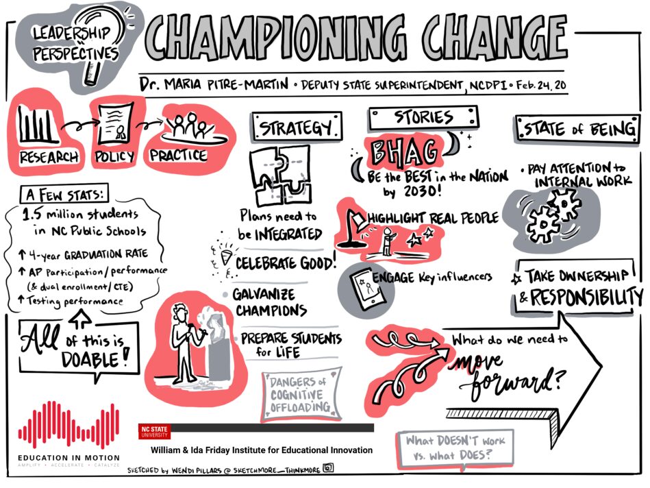 Marie Pitre-Martin, deputy superintendent of North Carolina Department of Public Instruction (DPI), shared a few words about how strategic planning and leadership impact innovation. One point made was that a leader can not be all things for all people.