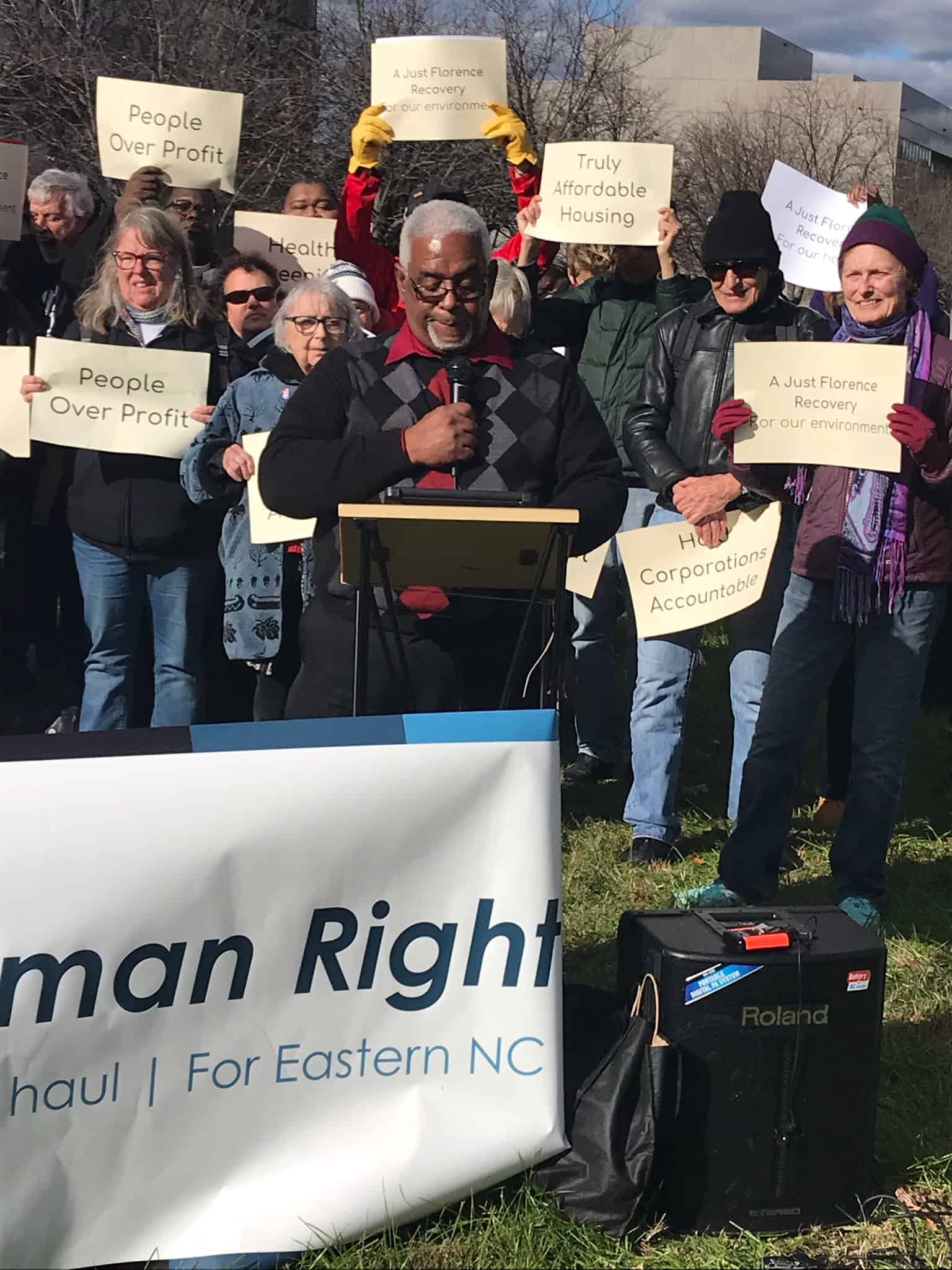 “Our legislators in North Carolina have been more focused on suppressing voters through things like Voter ID than they have been concerned with their constituency suffering through the hurricane and trying to get their lives back together,” Patterson said. “Our message is simple. We want a just recovery.”