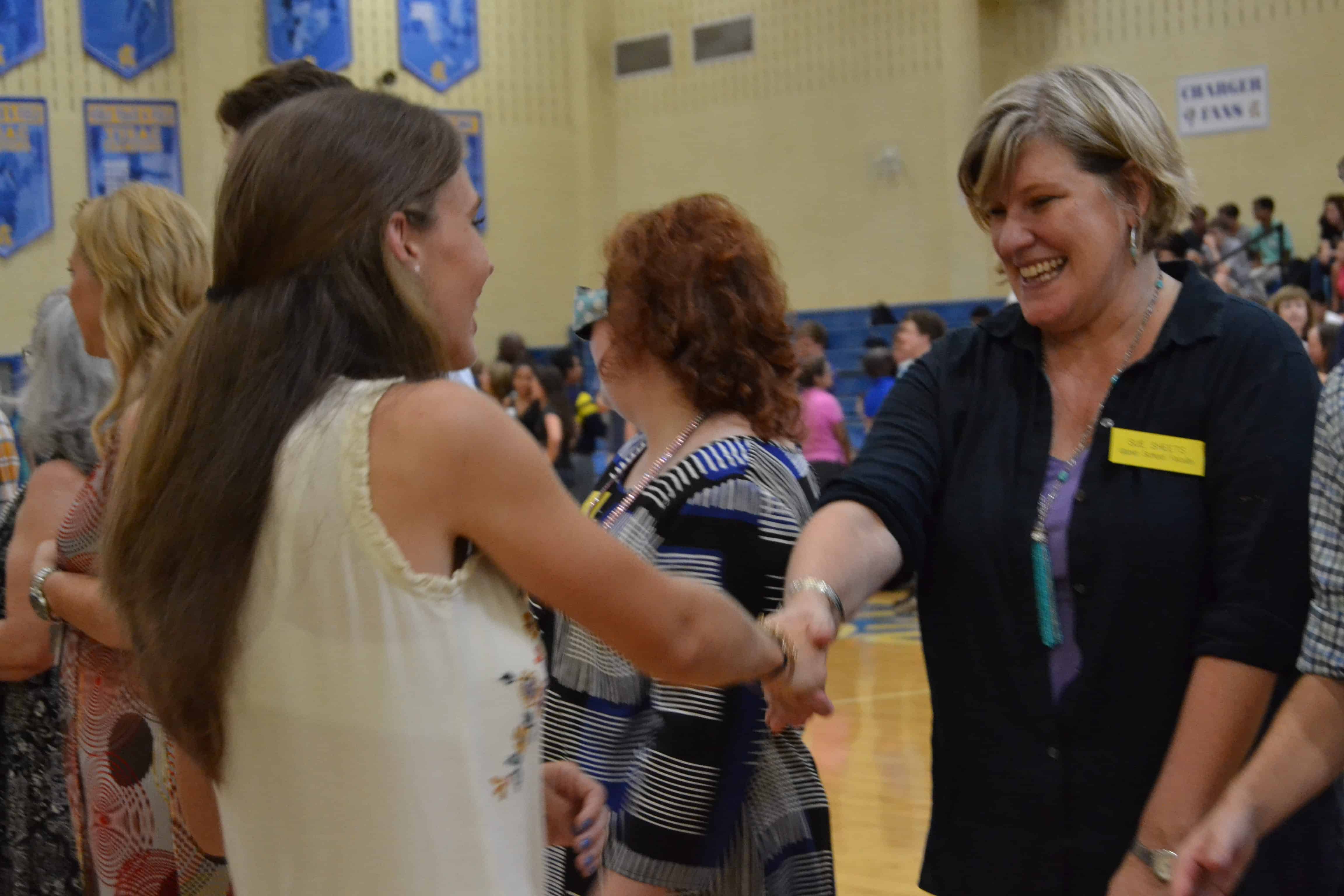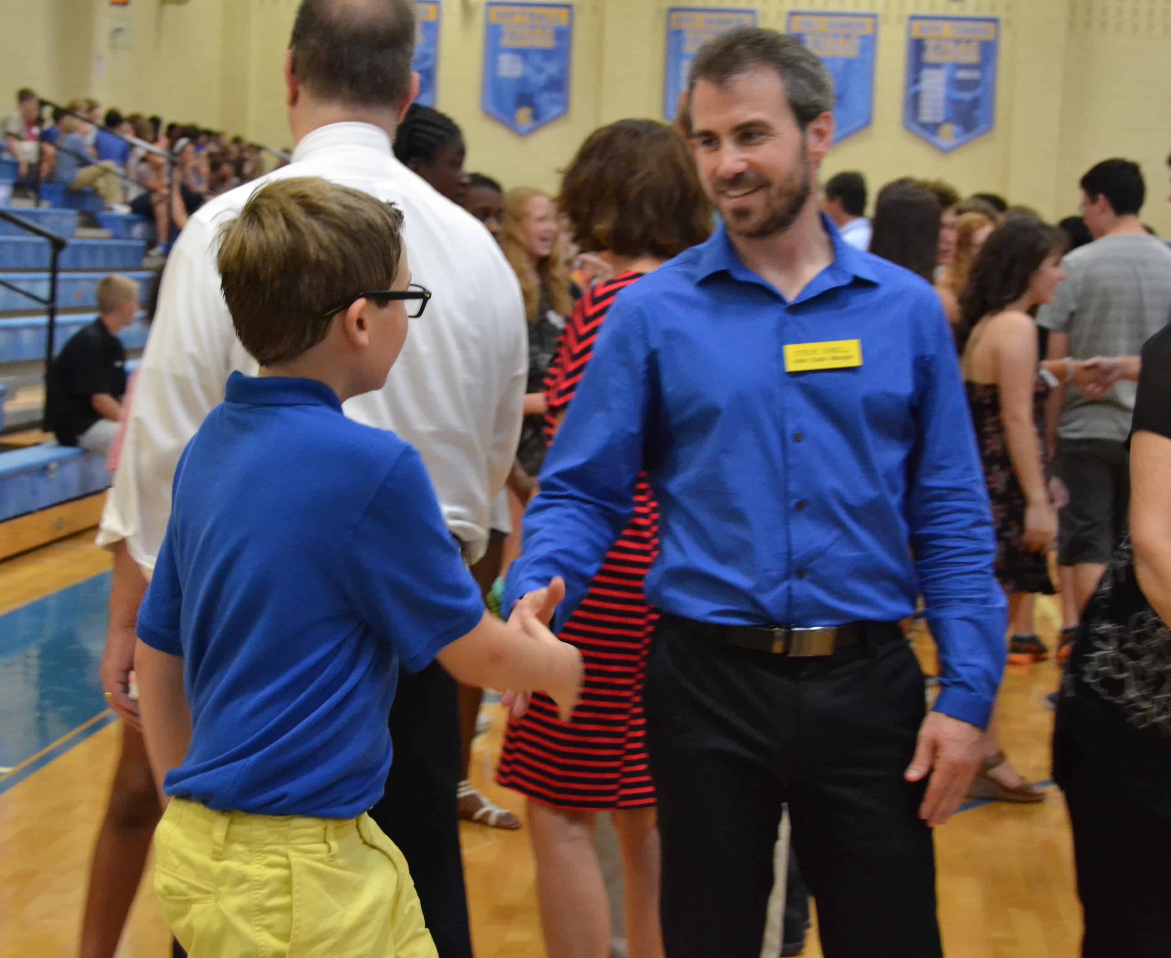 “The idea behind the handshake ceremony is fairly simple, but I think it’s worth remembering as we come together.” Ehrhardt said to bleachers full of students. “This is a school, as you’ve heard over a number of different times… that was really founded to sort of push the boundary on what education could be all about. Certainly, we like to think about ourselves as a future-forward and a tech-heavy school. But at it’s core, we believe learning involves building community and building relationships.”