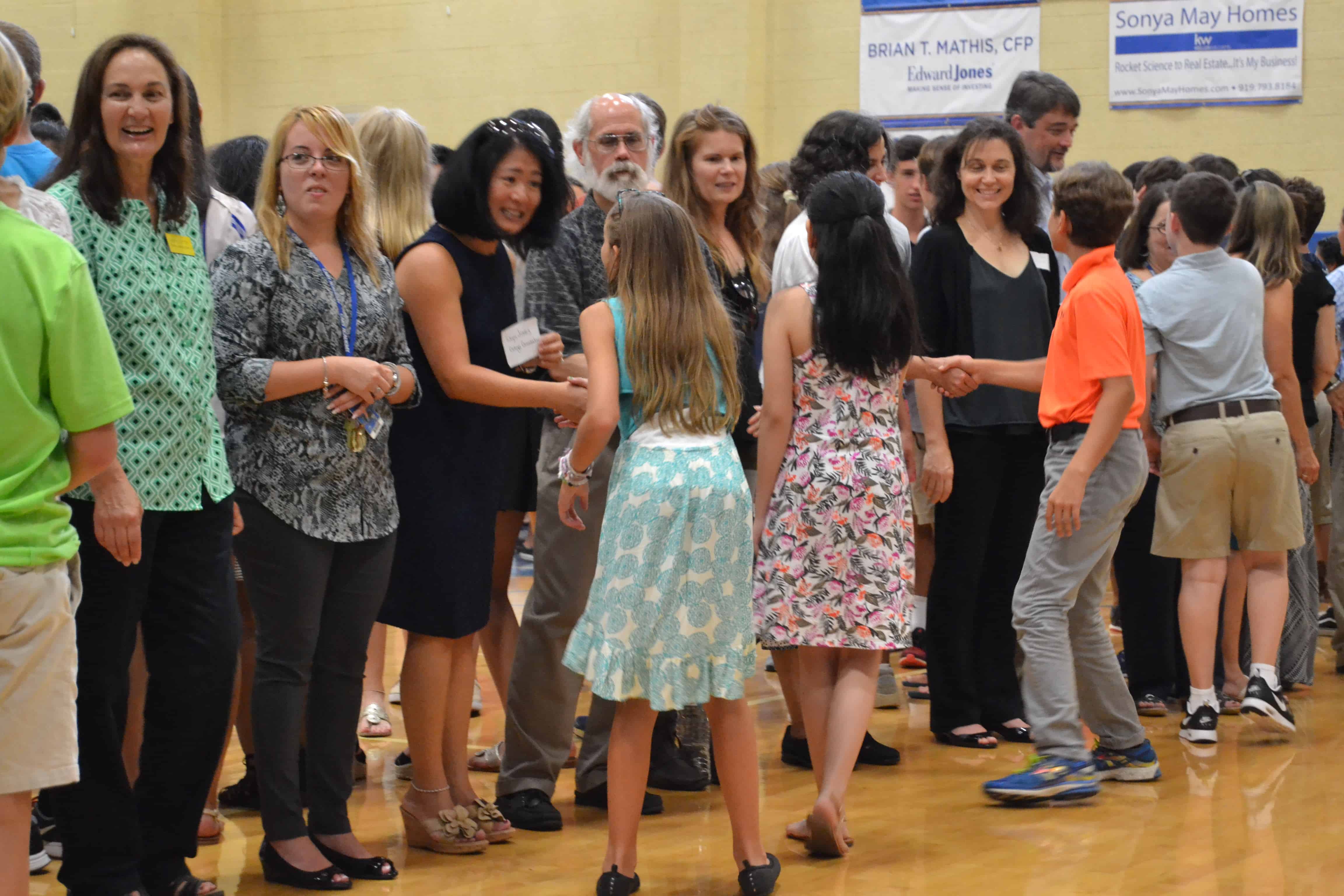 Cary Academy — a private school that serves 761 sixth-twelfth graders — is celebrating its 20th anniversary of providing education and of starting off each year with a handshake ceremony. On the first day of each school year, each Cary Academy student shakes hands with each faculty member and each senior.