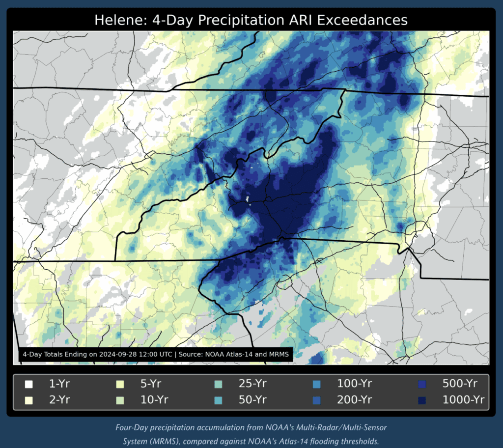 The average rainfall for September in the region is usually five to six inches, according to data from NCEI’s 1991-2020 normals. In “Helene in Southern Appalachia, One year later: An event analysis and how we move forward,” NOAA estimates five and a half months’ worth of rainfall fell in just four days.