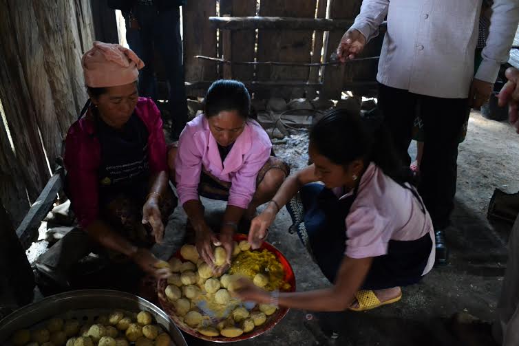 At Sala Aebae, many students face debilitating malnutrition. This is the reality in Laos. The US is helping address the issue by providing annual funding for the World Food Programme’s School Meals program. At 10:00 a.m., with the help of volunteers, students are served cornmeal, banana, and soy patties with added nutrients. In addition to addressing serious stunting issues, this meal help boosts school attendance.
