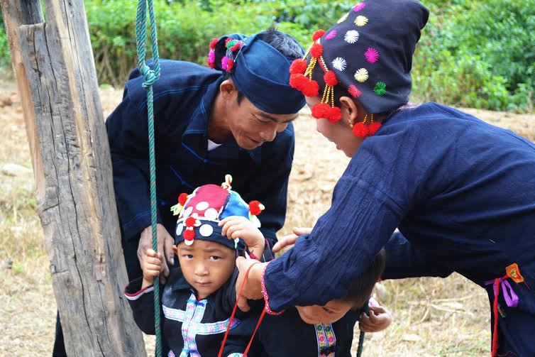 My connection to Laos is my parents, Ambassador Daniel Clune and Judy Clune. Visits to rural schools are among their favorite official responsibilities. In October 2015, they visited Sala Aebae Primary School primary school in Udomxai province in the far north. Judy remembers, “locals made all the playground equipment, plus a picnic table with an umbrella, out of saplings.” The community was predominantly Akha, one of the hundreds of ethnic minority groups in Laos, and the Clunes visited on a Wednesday, when students are encouraged to wear traditional dress to school.