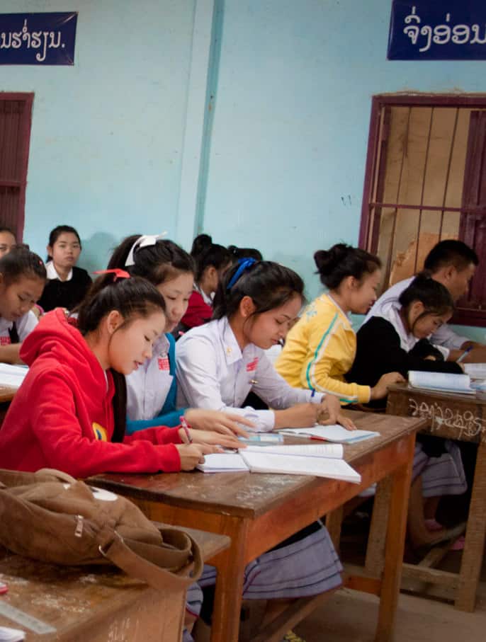According to Education for Development Foundation-Lao (EDF-Lao), there are roughly 8,676 primary schools (grades one through five) and 1,572 secondary schools (grades six through twelve), and five public universities. Families who can afford to often send their children to private schools, but this group constitutes less than two percent of the country’s students.2 Data on enrollment and graduation is hard to find and verify, but according to the Education Policy and Data Center roughly 15 percent of students enroll in postsecondary school programs. While schools in Laos are state-run and tuition is free, families must pay for school supplies, uniforms, and other everyday essentials — hidden costs which can be insurmountable.