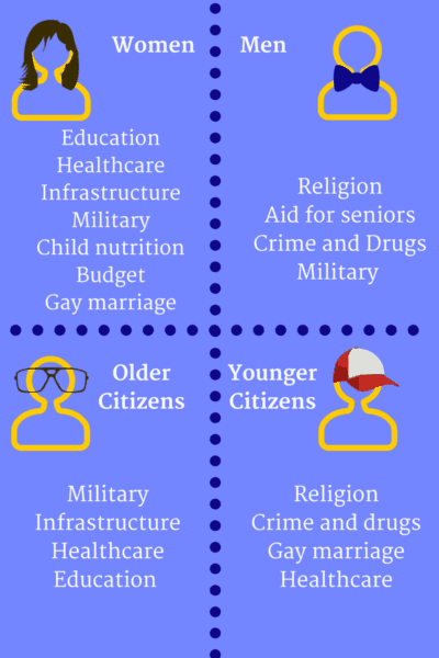Overall, education ranked as the most important issue with 56 percent of respondents ranking it highest. An analysis of each individual’s top five issues revealed differing levels of importance by gender and age.
