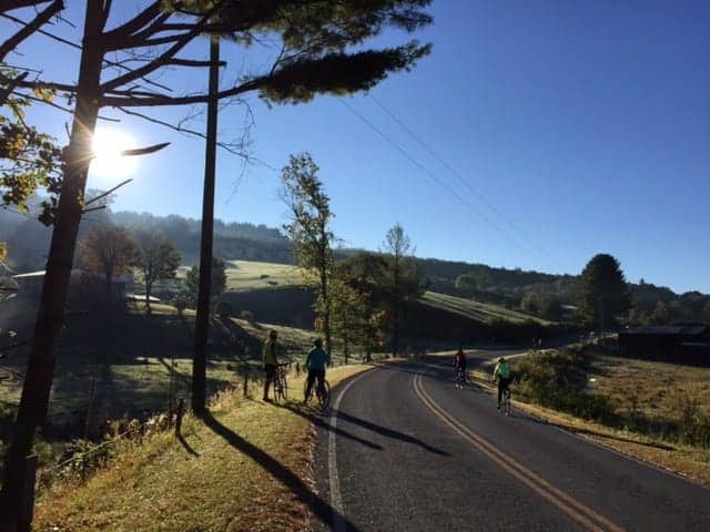 This week, the EducationNC team is traveling across the state, from the mountains to the coast, on bikes! We are excited to see schools and meet teachers and students from all parts of North Carolina. We started today in Jefferson and stopped by Traphill Elementary School in Wilkes County (though it was closed for the weekend). The ride was hilly and cold, but the gorgeous scenery made the climbs worthwhile.