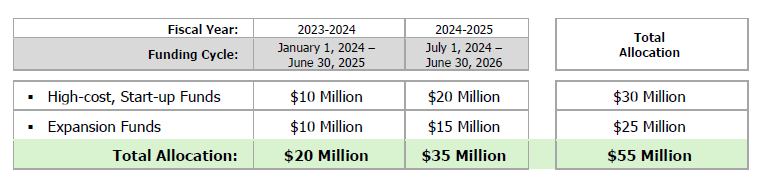 The grant’s 2023-24 annual report reads that each community college had five opportunities over two funding cycles to submit proposals. The maximum award amounts were $500,000 for start-up grants and $400,000 for expansion grants. In all, each of the state’s 58 community colleges received at least one grant, with some receiving as many as five.